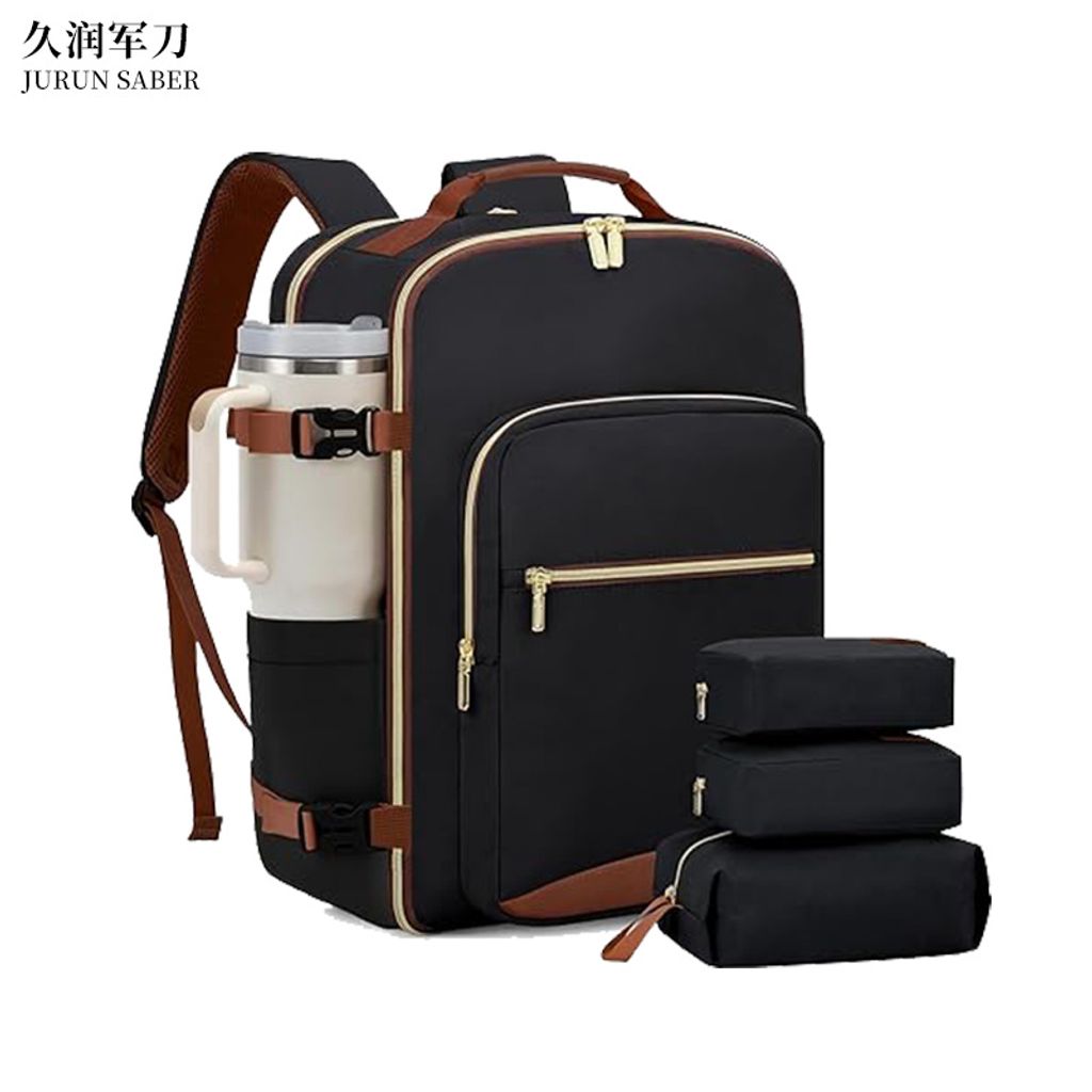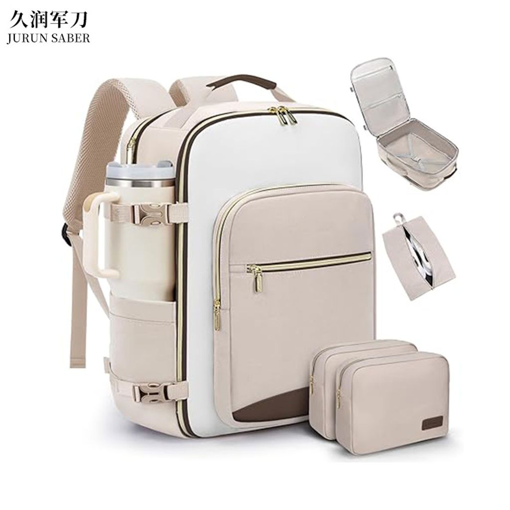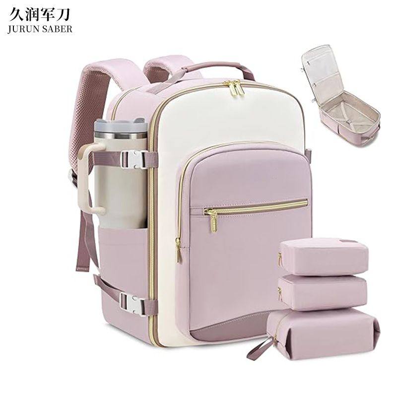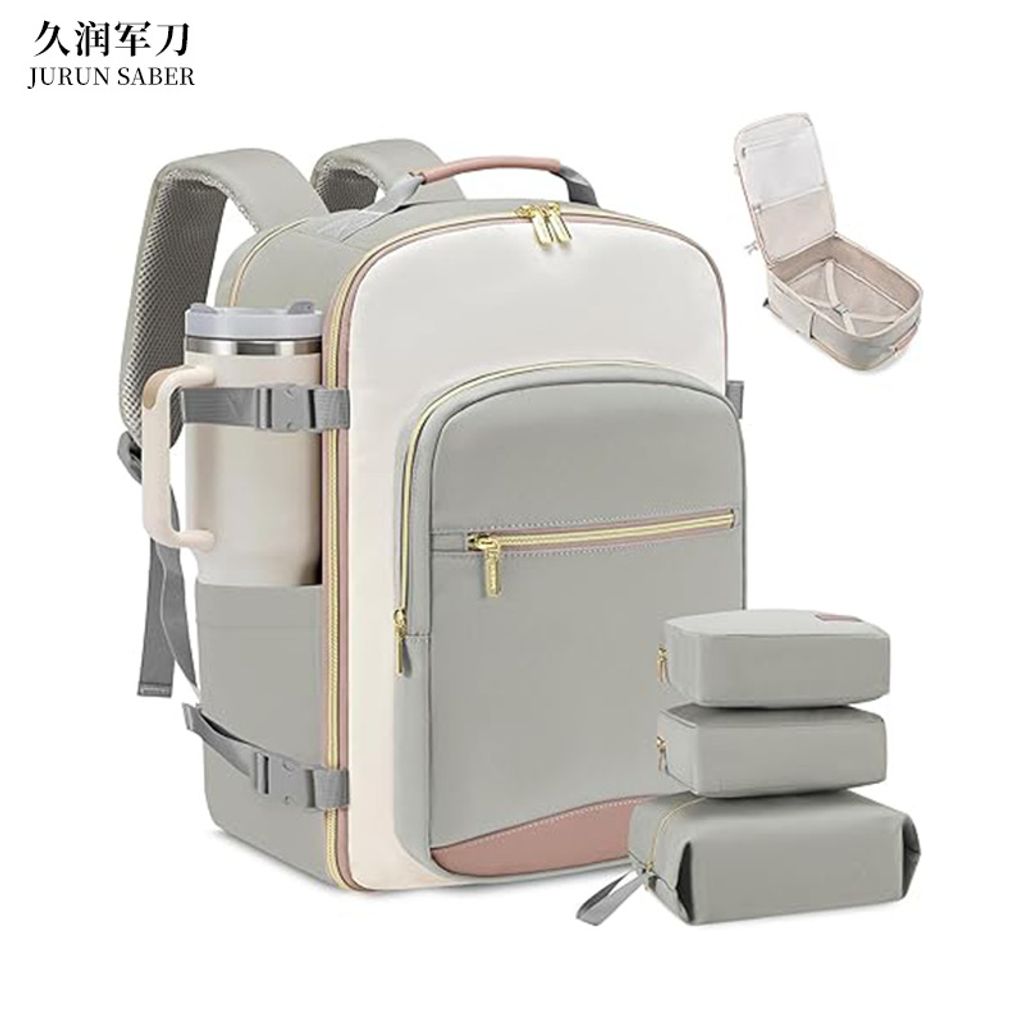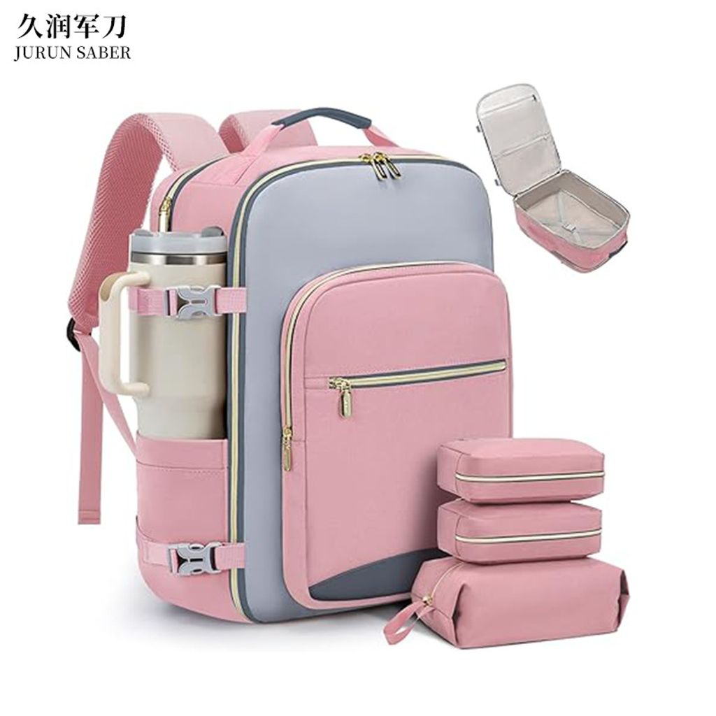 Colorblock Carry-On Travel Backpack with 3 Pack ing Cubes and Laptop Compartment - Personal Item,TSA-Friendly, Airline Approved Travel Bag for Hiking, Week