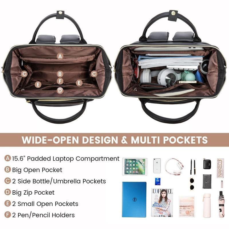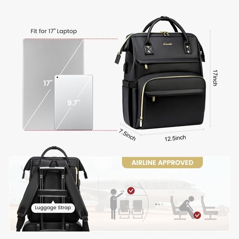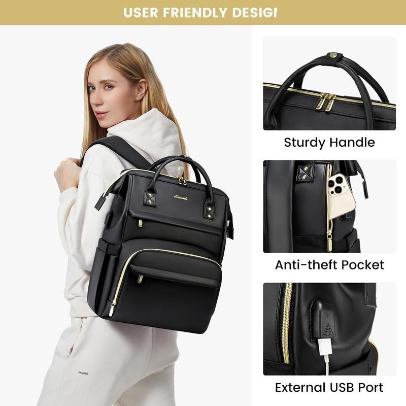Vegan Leather Laptop Backpack with USB Port for Women College Business Work Teacher Travel School Backpack Back to Schooll
